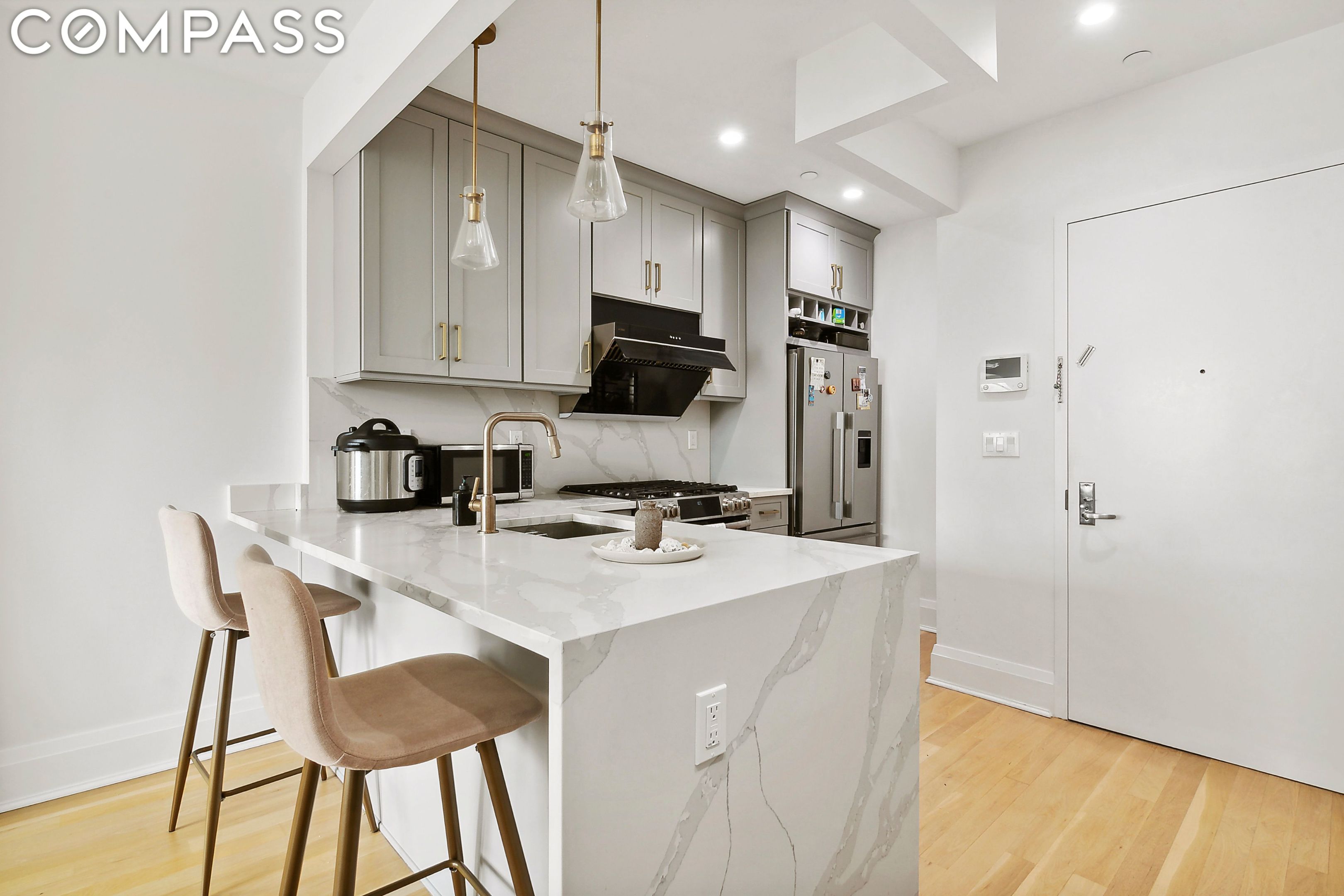 This completely turn-key residence boasts ultra high-end finishes included white oak flooring, quartz counters, full size appliances including french door refrigerator, dishwasher and in-unit LG washer/dryer.