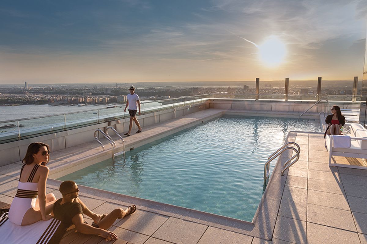 -Rooftop pool & sundeck with cabanas